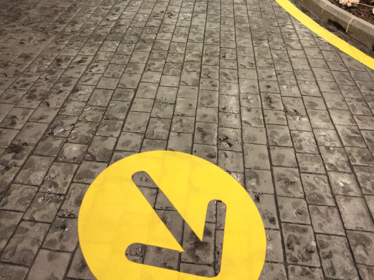 بدأ توزيع اللون على سطح الخرسانة الطرية وتطبيعها بالختم المخصص